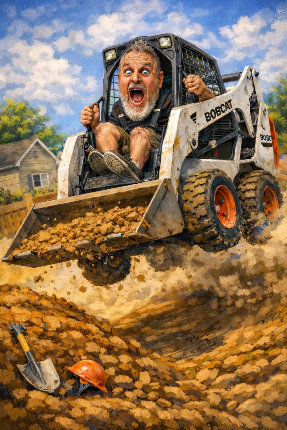 Then I hit the dirt pile at full speed like I was auditioning for Dukes of Hazard: Construction Edition.