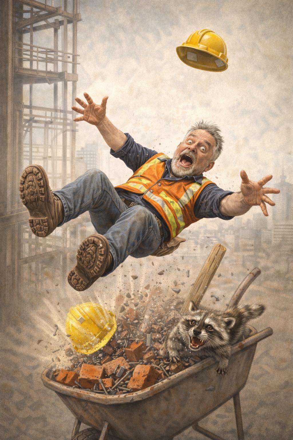 And just to make sure the universe gets one last laugh, the hard hat lands FIRST.