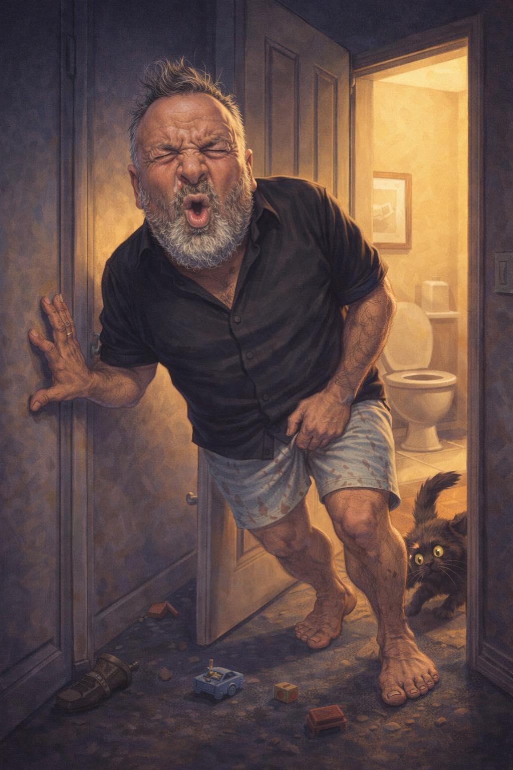Tears swelling in my eyes, leaning against the wall holding my big toe, almost forgetting why I?m even out of bed.