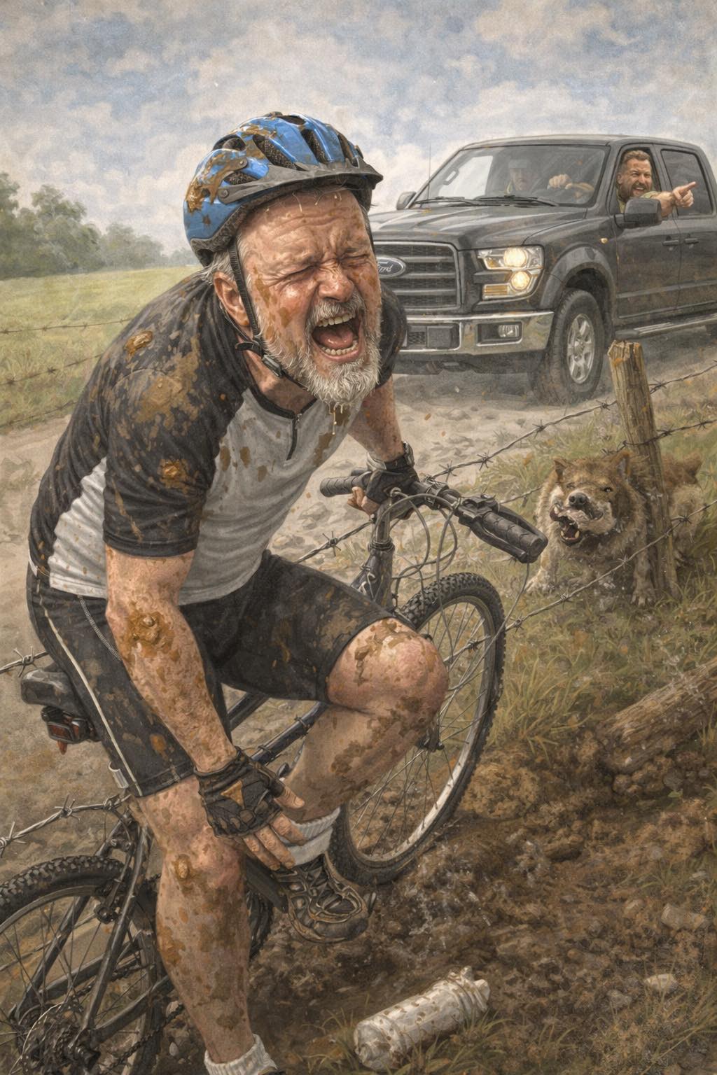 Then the bike falls out of a tree and smashes you in the face, finishing off the rest of your teeth.