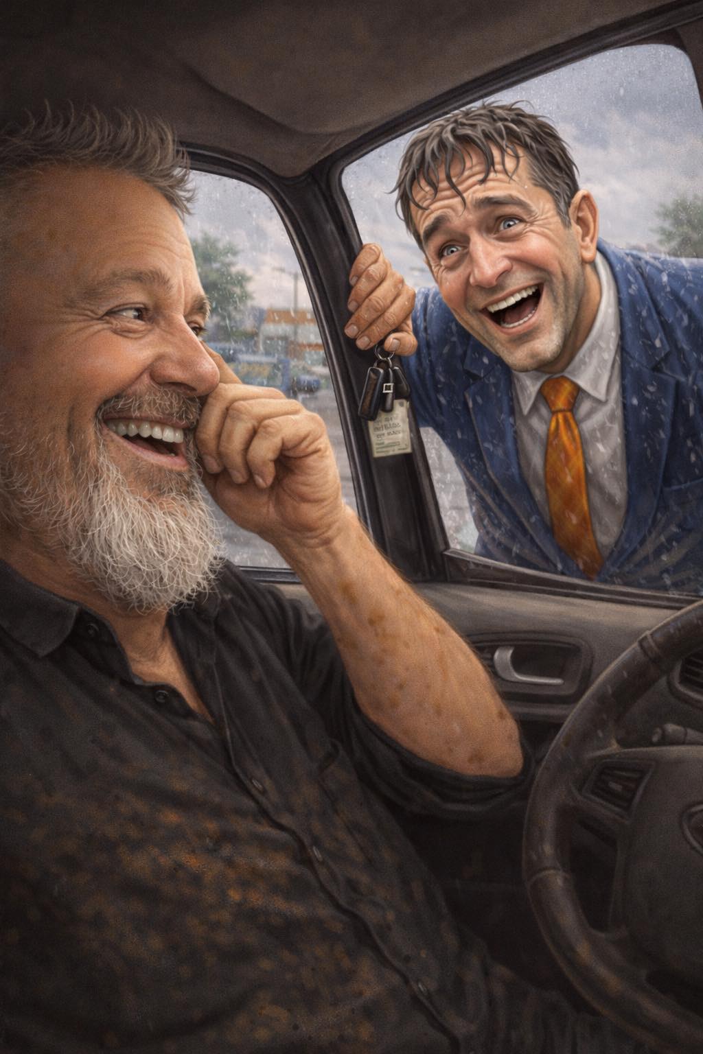 Bonus points if it?s raining - they?ll stand out there in their shiny loafers soaking like wet pigeons while you?re cozy in your car with the window cracked just enough to make ?em think you might listen.